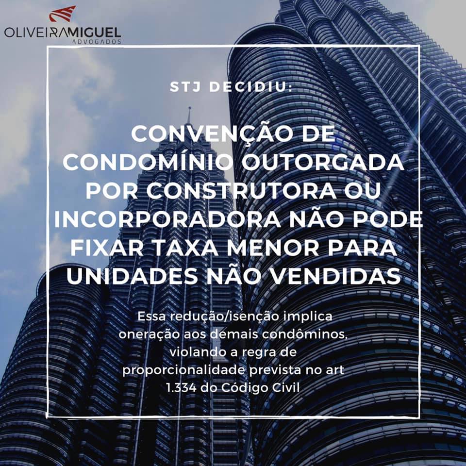 STJ decidiu - convenção de condomínio outorgada por construtora ou incorporadora não pode fixar taxa menor para unidades não vendidas
