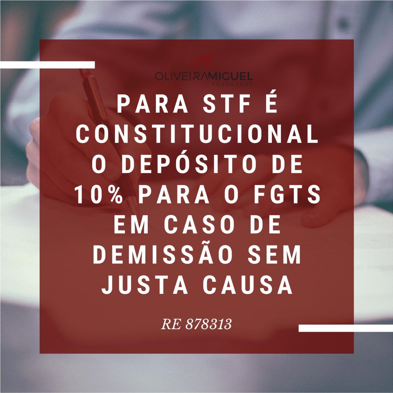 Para STF é constitucional o depósito de 10% para o FGTS em caso de demissão sem justa causa
